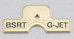 #887 - "Formula G-Jet" .020" Brass Handling Plate (each) Precision stamped .020" thick brass front handling plate with 0-80 threaded hole. Allows use of the long wheelbase on the chassis to create a "Formula G-Jet". Held in place by BSRT's #885 G-Jet Brass Handling Plate Holder. |
