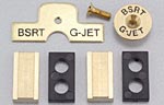 #885 - G-Jet Brass Handling Plate Holder with 0-80 Screw (set) G-Jet front brass handling plate holder along with brass 0-80 screw. The Handling Plate Holder fits into the space in front of the G3 guide pin. The supplied brass screw will hold your choice of .020" or .032" Brass Handling Plate. |