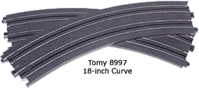 Radius Curve Track The long anticipated AFX 18� radius curve track has finally arrived and we have lots of them in stock ready for immediate shipment. AFX part number 8997, this 1/8th curve track section fits outside their 15� curve which gives you even more possibilities when designing an AFX track layout. |