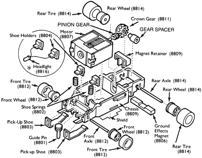 If you need to replace any original part on your AFX car, here's the place to get it. Scale Auto is the official factory supplier of all genuine factory AFX service parts. Click here for the Turbo Cutaway. |